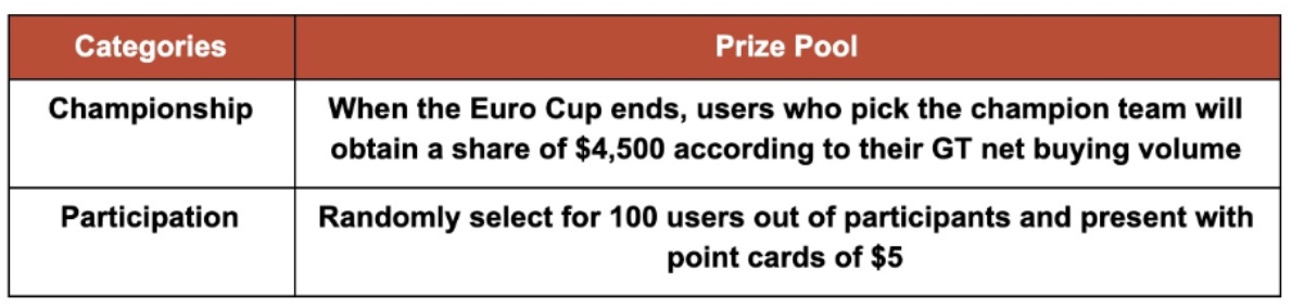 活动期间,投票选出您心中 2020 欧洲杯冠军队伍(7月12日决赛),一起瓜分4500美金等值代币。