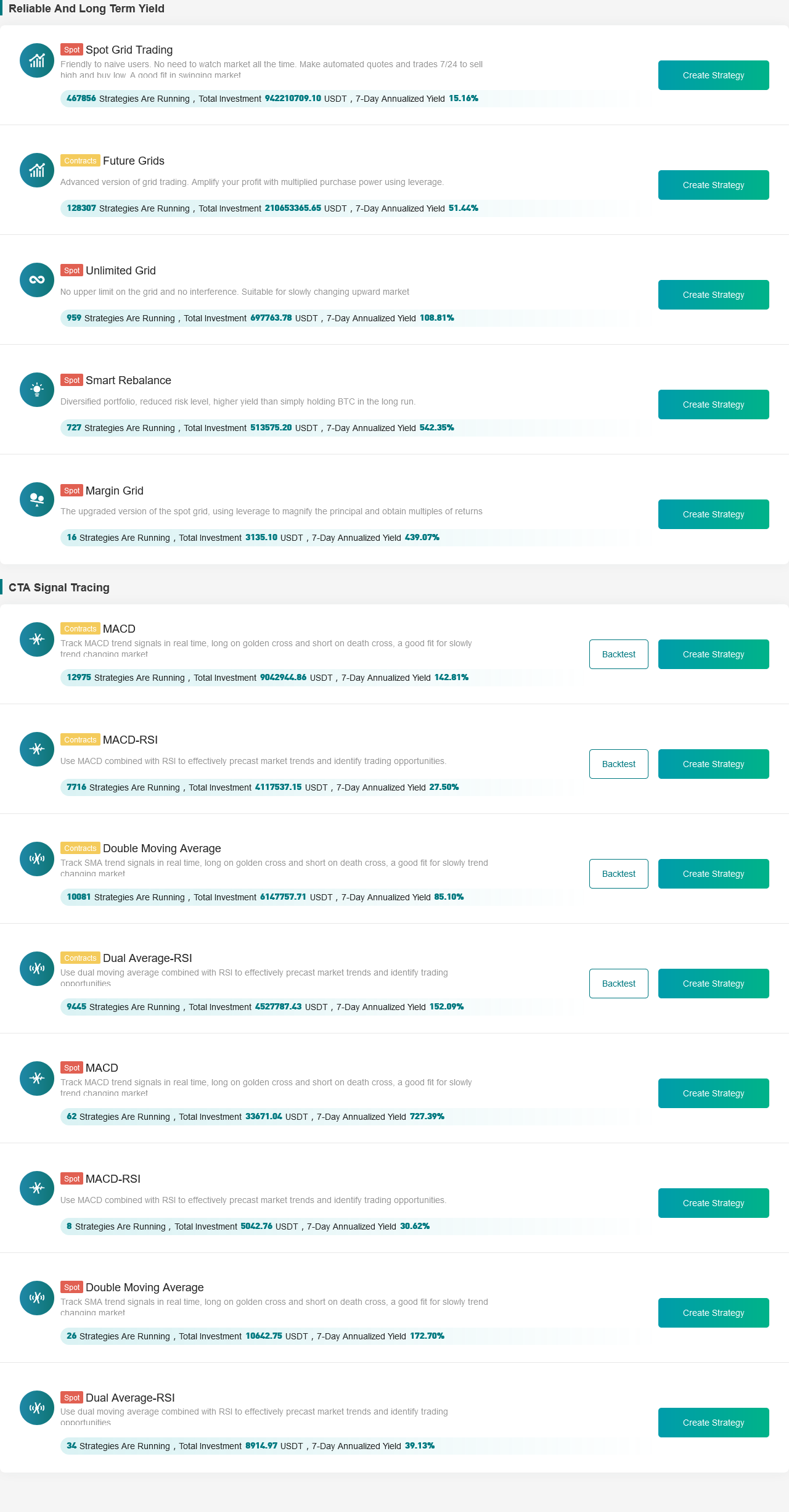 Users can view the performance of strategies created by other users in the leaderboard, and if they think a strategy has a better return than their own, they can copy the strategy's operating parameters to create an individualized version. All strategies are free to copy and 5% of the earnings will be returned to the signaller after the strategy is terminated.