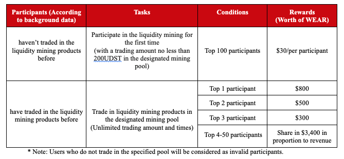 Since its launch, Gate liquidity mining products have been receiving enthusiastic responses. And they are growing better through continuous optimization. To welcome new players and reward regular players who have been supporting the products, Gate will launch a seven-month Exclusive Mining Rewards Activity. Users who participate in the liquidity mining trading can get a mega exclusive mining reward. If users join the TG group and retweet the Twitter, they can also receive a prize. Trade in the WEAR mining pool now!