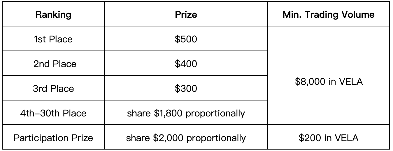 Semua pengguna yang memenuhi syarat berdasarkan volume perdagangan dapat berbagi $5,000 VELA.