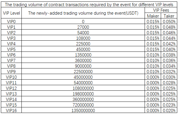 There are inconsistent fees among different levels of VIP. The higher the VIP level, the lower the user's fees.