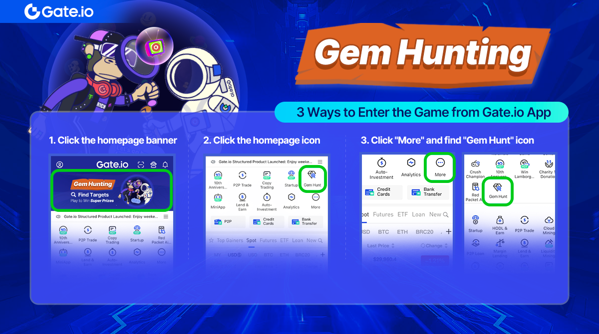 Step 2: Click the icon “Gem Hunt” or the banner on the homepage of Gate app