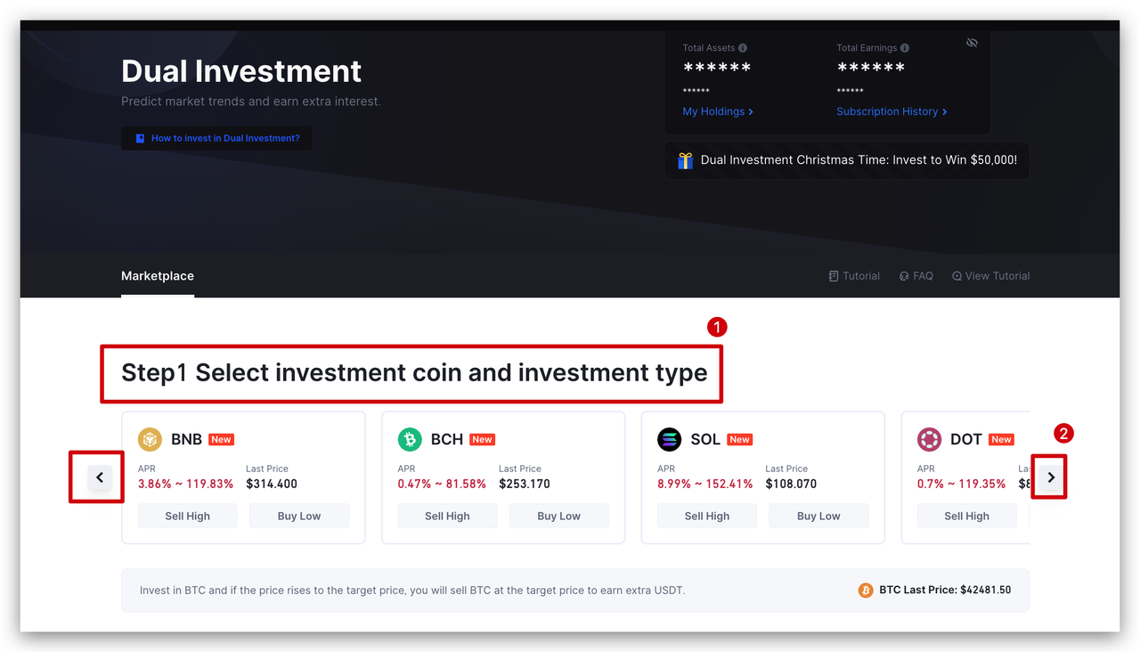 1.انتقل إلى [الخطوة 1 حدد عملة الاستثمار ونوع الاستثمار]