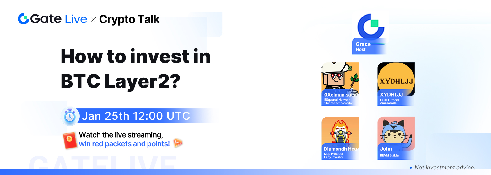 GateLive проведет прямую трансляцию конференции по криптовалюте в 12:00 (UTC) 25 января. Мы приглашаем четырех гостей обсудить инвестиции в BTC Layer2.