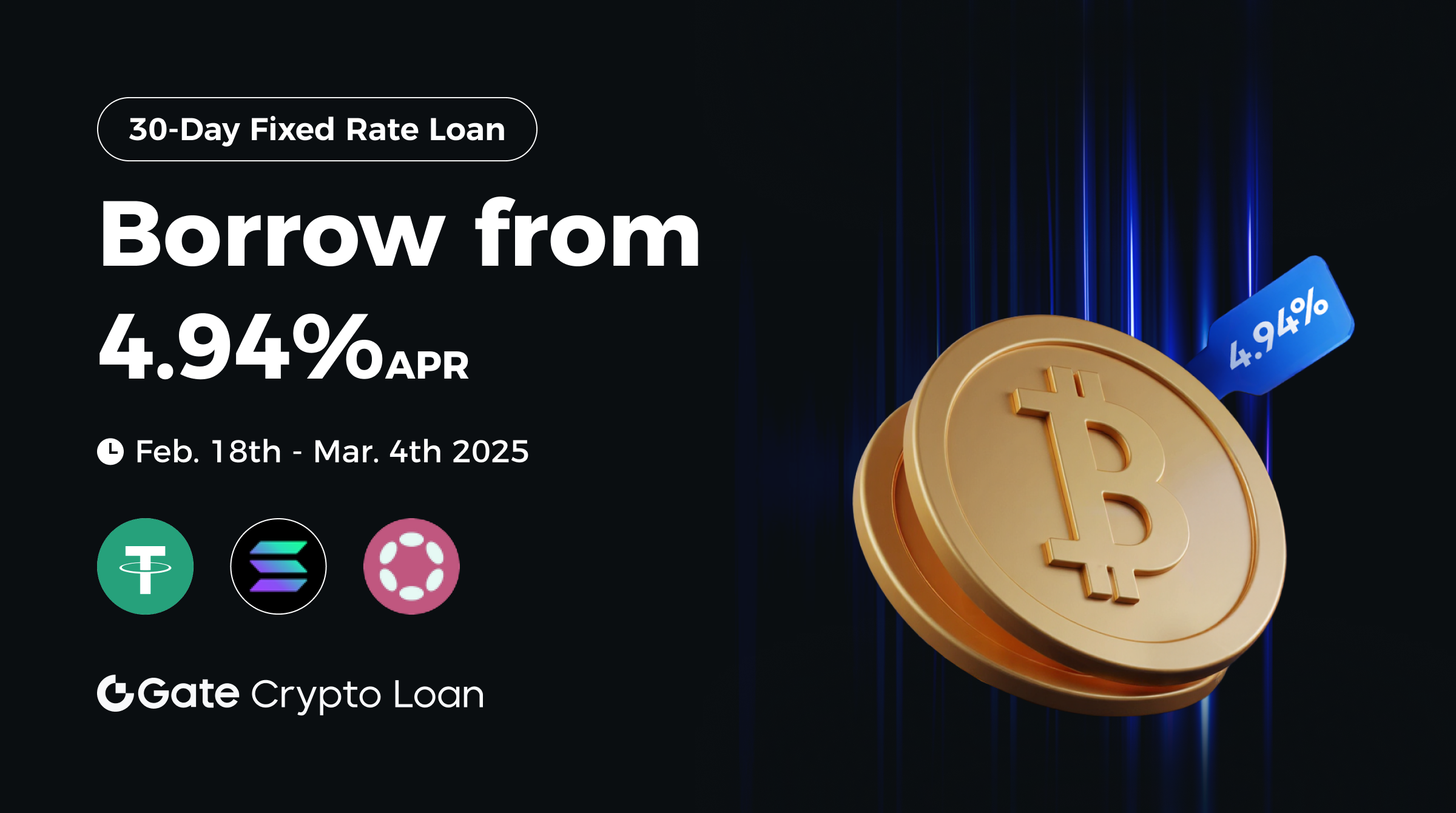 Gate Crypto Loan: Borrow 30-Day Fixed Rate Loan with APR as low as 4.94%!