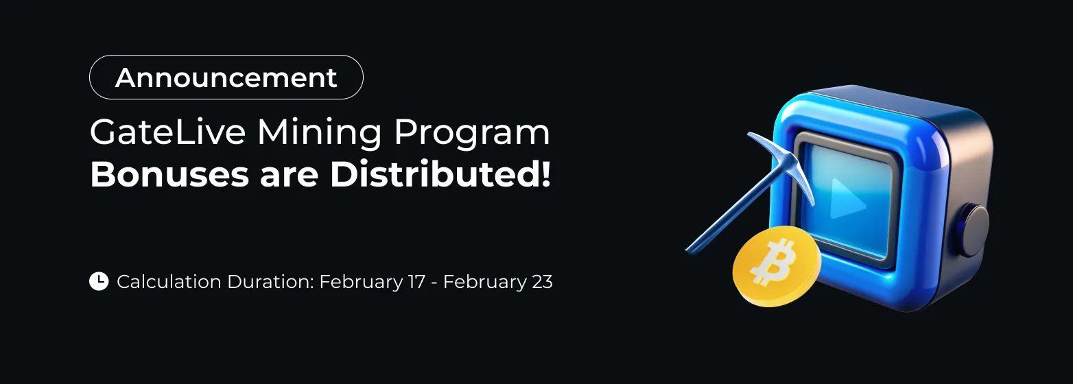 The Live Mining Commission and Strategy Copy Commission for GateLive streamers from February 17 (UTC) to February 23 (UTC) has been distributed to the streamer's spot account in USDT. Please check "Assets - Spot".