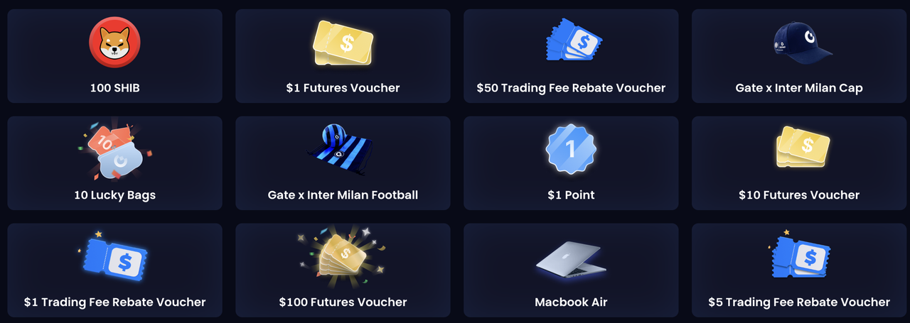 - Prizes include MacBook Air, Exclusive Merch, Futures Voucher, Points, Lucky Bags, Trading Fee Rebate Voucher, and more.