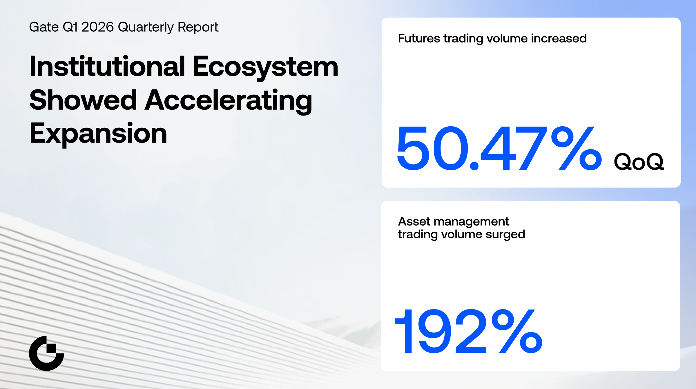 In the first quarter of 2026, Gate maintained solid performance across its wealth management and yield-generating businesses. Staking products sustained a TVL consistently above \$1 billion. Allocations into core assets such as BTC and ETH continued to rise steadily. On-chain and trading businesses delivered particularly strong performance: Gate Layer surpassed 100 million on-chain addresses, Perp DEX quarterly trading volume exceeded \$13 billion, ETF quarterly trading volume grew to more than 18 billion USDT, and user activity across copy trading, trading bots, and options products continued to climb. TradFi perpetual futures emerged as a major growth driver, accelerating the platform’s evolution from a single crypto derivatives venue into a multi-asset trading ecosystem. Meanwhile, institutional services, asset management platforms, and quantitative fund businesses expanded rapidly, with institutional futures trading volume, CrossEx trading volume, and asset management trading activity all achieving significant growth, highlighting Gate’s transformation from a traditional trading platform into a comprehensive digital asset financial infrastructure provider.