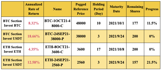 the investment in BTC/USDT dual currency financial products as an