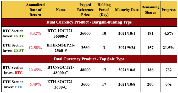 Dual Currency Products Information (Partial)