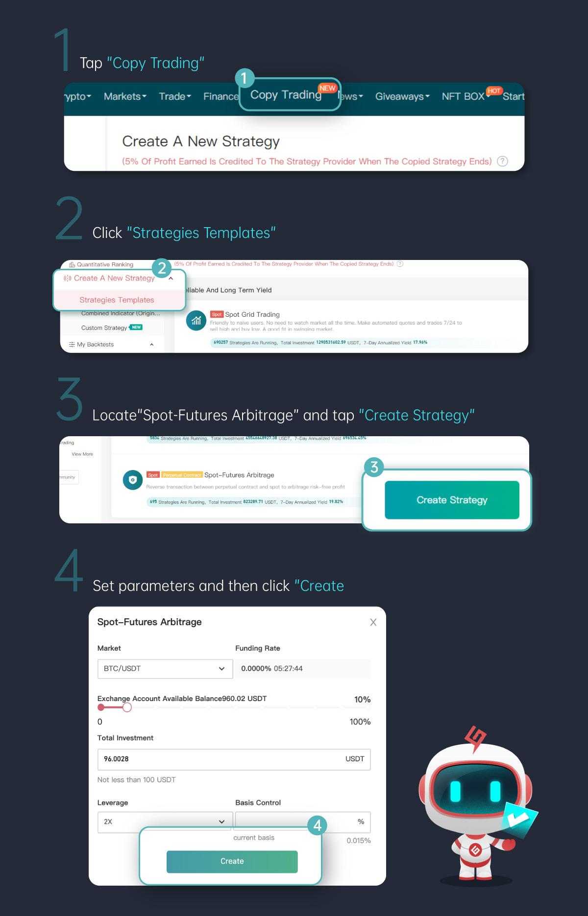 We are pleased to announce the launch of the 15th trading strategy bot in Gate Copy Trading section. The name of the strategy is spot-futures arbitrage which leverages the reverse transaction between perpetual contract and spot to earn low-risk profits.