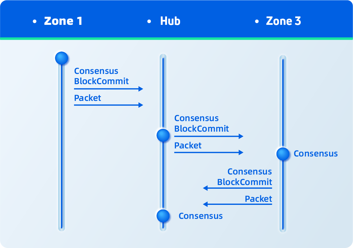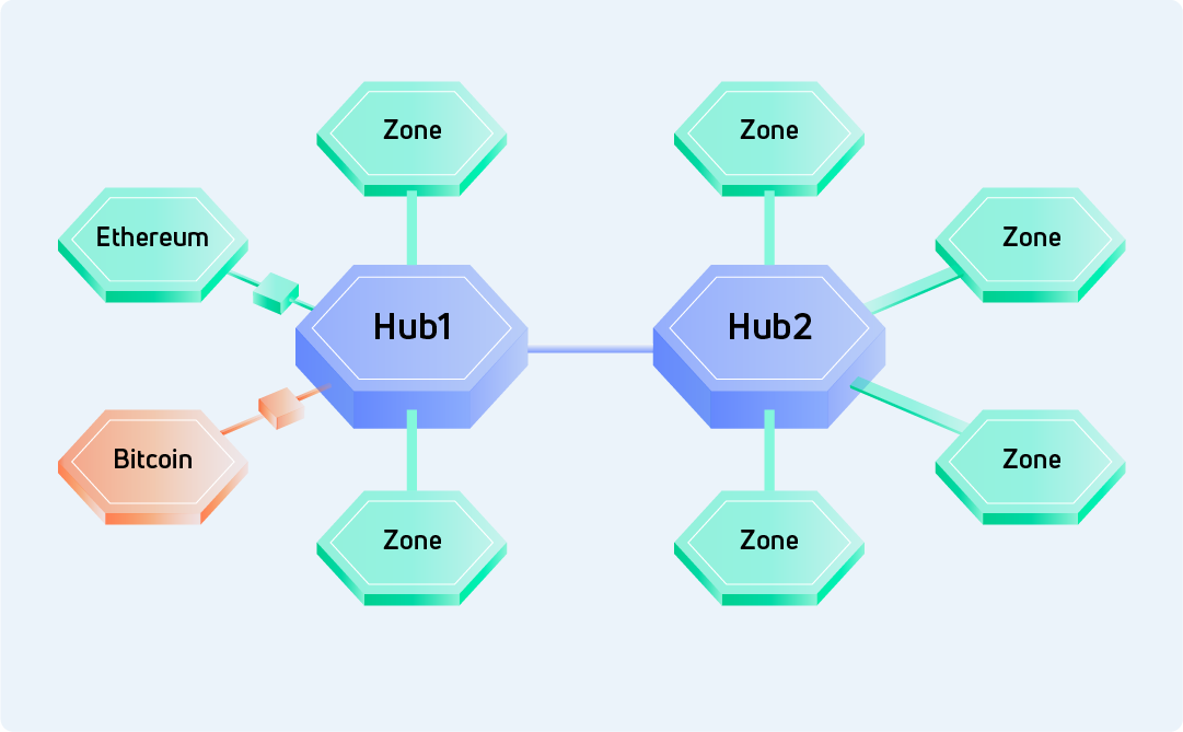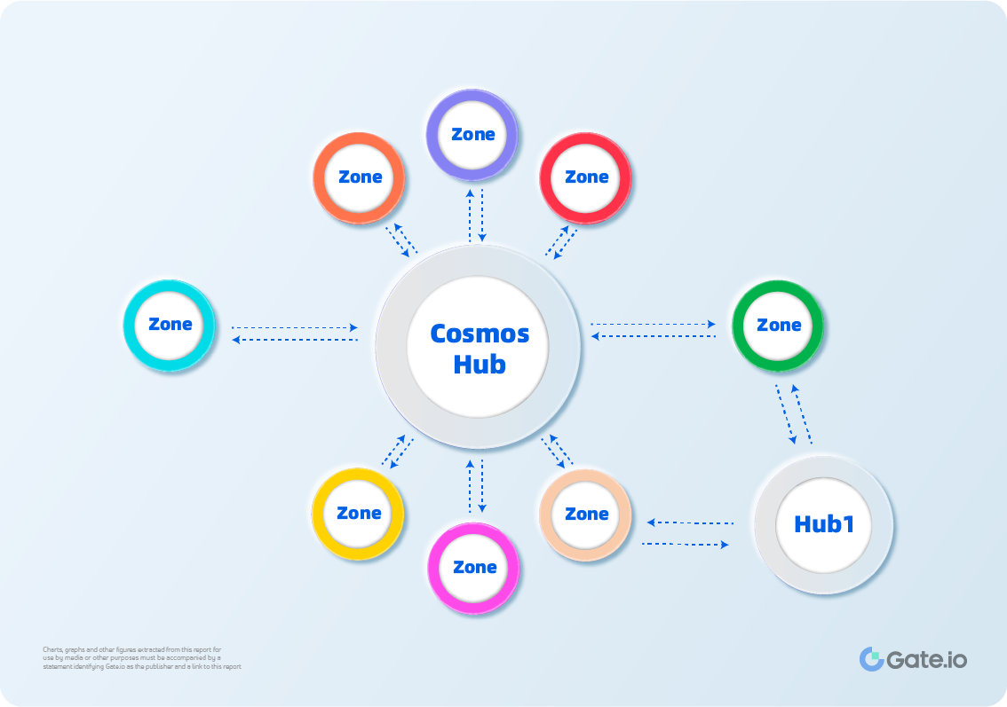 Cosmos network consists of multiple chains and the management and communication of different chains is a question that can not be avoided. In short, Cosmos assigns different tasks for different chains. The chains, where applications are run are called Zone. And the chains, where data is communicated are called Hub.