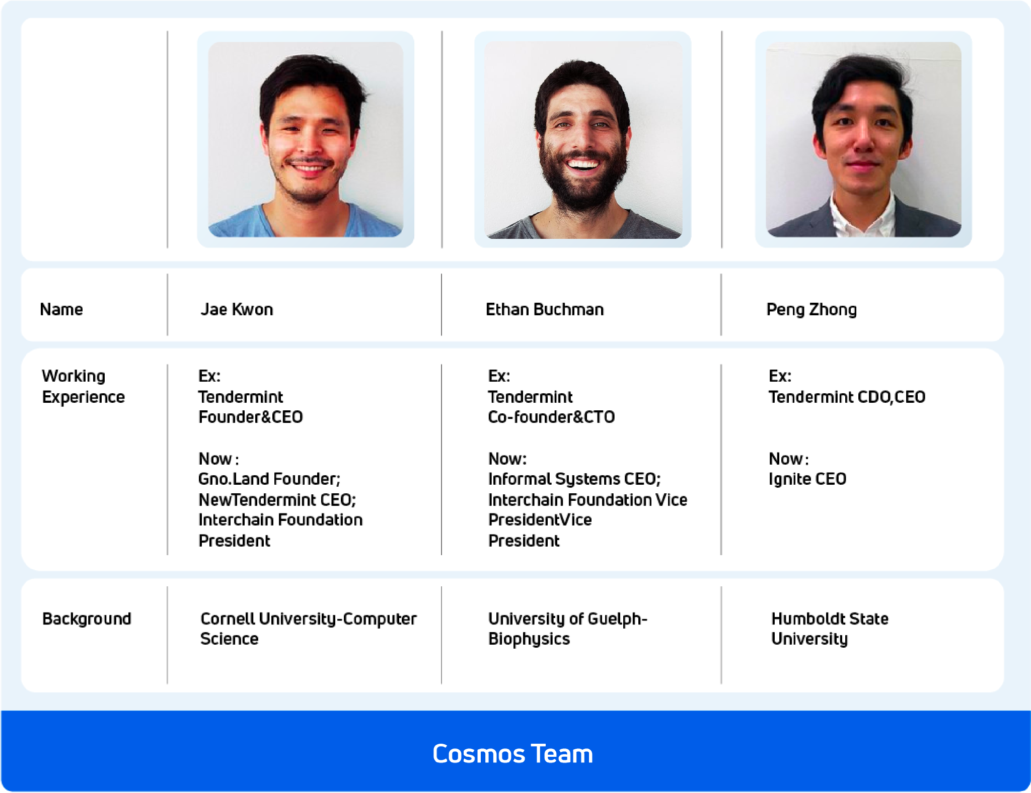 A good team always has a great leader, just like Ethereum has Vitalik and Binance has CZ. Jae Kwon is the captain of Cosmos.