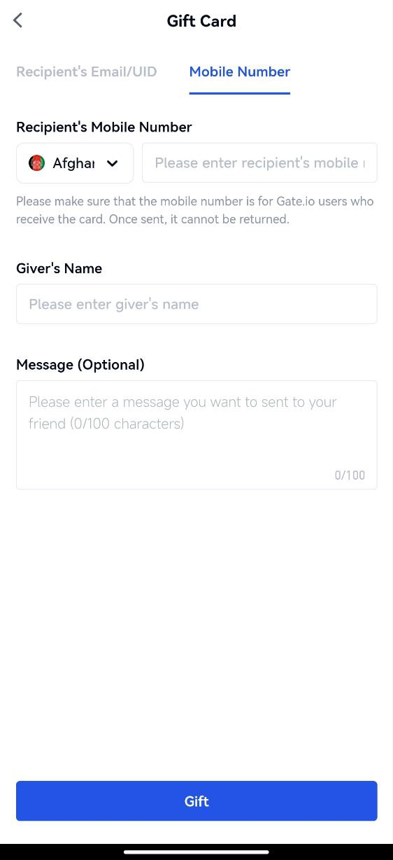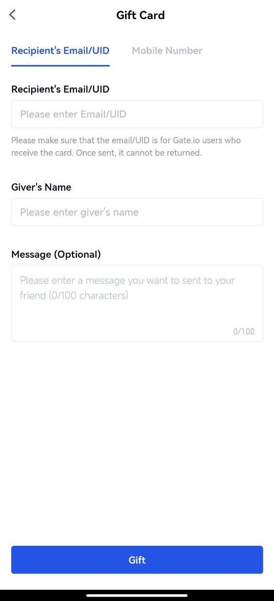 Gate provides users with a simple and fast way to send and receive cryptocurrency. Users only need to complete three simple steps (creating, sending, and cashing out) to experience the excitement of digital assets. Gate gift card supports custom functions without paying any processing fees. Lastly, the cards are sendable to Gate and non-Gate users via text, email, or GateUID.
