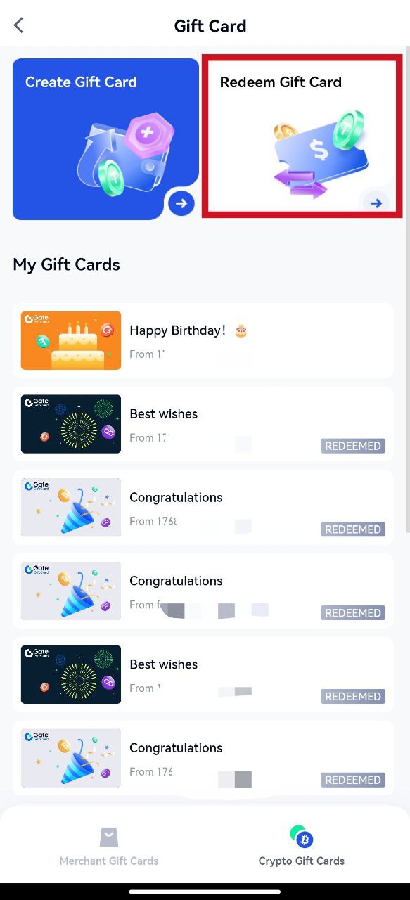 1.After receiving the gift card, Click on【Redeem Gift Card】at the Crypto Gift Card homepage