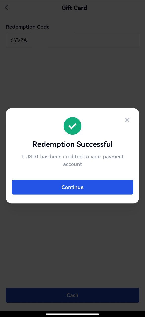 2.Enter the redemption code to complete it. The funds will be transferred to your payment account