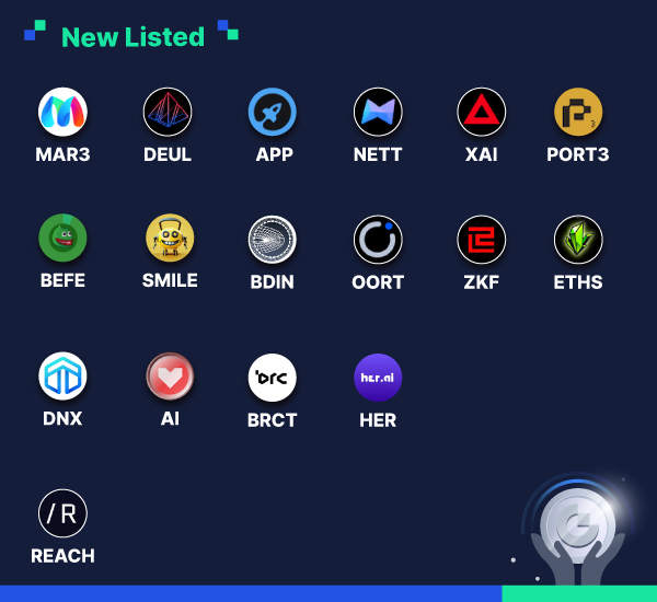 MAR3، DEUL، APP، NETT، XAI، PORT3، BEFE، SMILE، BDIN، OORT، ZKF، ETHS، DNX، AI، BRCT، HER، REACH.
