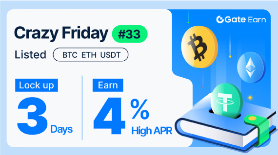 ·12 يناير - 15 يناير، Gate Crazy Friday#33: احصل على معدل فائدة سنوي مرتفع بنسبة 4% على أهم العملات المشفرة مع فترة تأمين مدتها 3 أيام