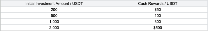 هذه البدلة متاحة للمستنسخين الجدد، مع حد أقصى يصل إلى 100 USDT نقدا (دعم نقدي للخسارة).