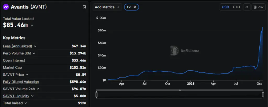 قيمة إجمالي الأصول المتاحة في @avantisfi قد زادت بسرعة بمعدل 5 أضعاف، من $15M إلى 80 مليون دولار.