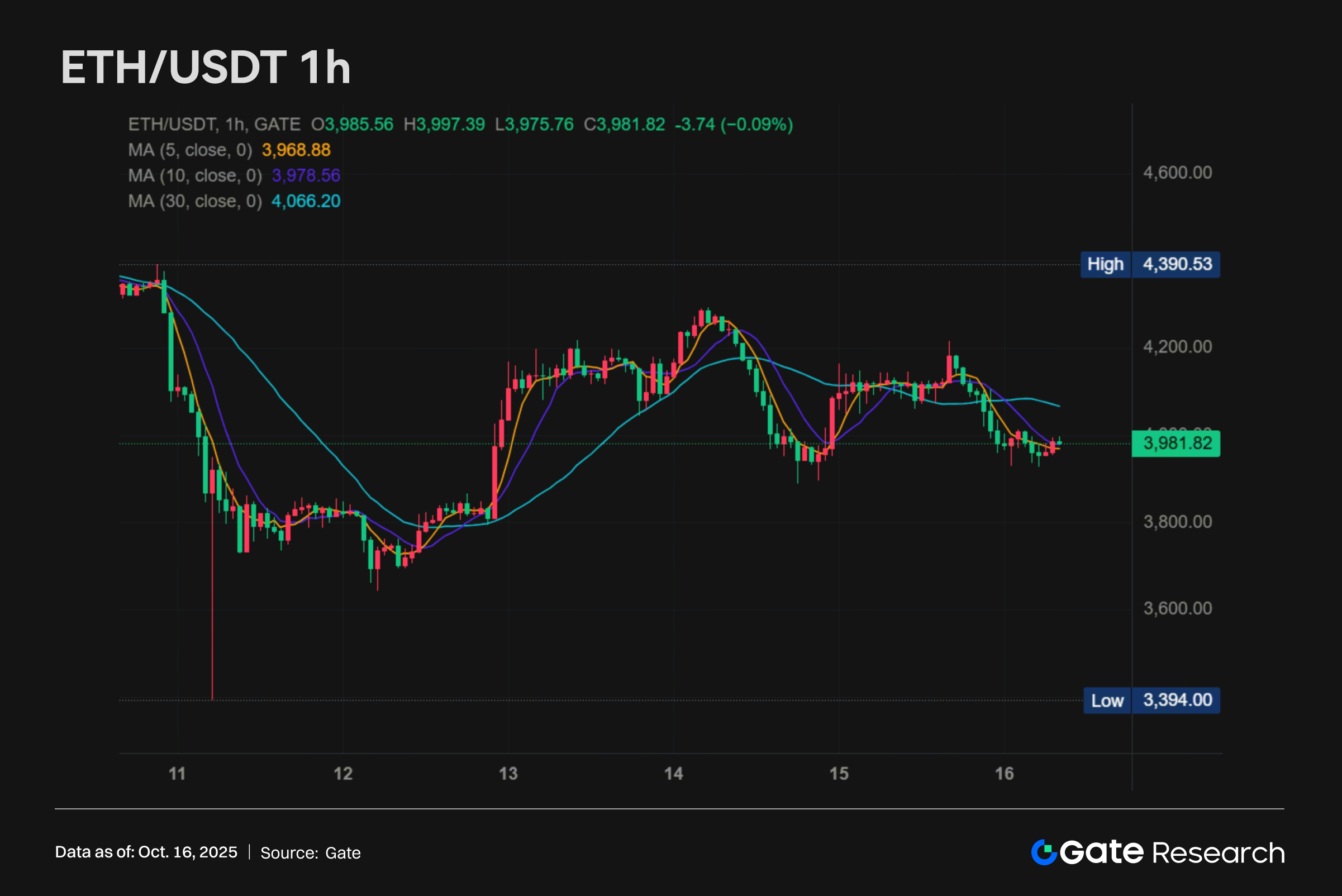سعر الإيثيريوم الحالي هو 3,981 دولار، وقد انخفض بنسبة 3.17% خلال الـ 24 ساعة الماضية، مع زيادة في حجم التداول، وقد انخفض دون المتوسط المتحرك لمدة 30 يومًا، ويتأرجح بالقرب من المتوسطات المتحركة لمدة 5 و 10 أيام. مؤشر MACD الذي شكل تقاطع ذهبي بالأمس تحول بسرعة إلى تقاطع ميت، مما يدل على ضعف الزخم الصعودي على المدى القصير، وعاد السوق ليكون تحت سيطرة الاتجاه الهبوطي. السعر انكسر دون مستوى 4,000 دولار الحاسم، مما أنهى زخم الارتفاع في الأيام القليلة الماضية، وهو الآن يقترب من مستوى الدعم التالي عند 3,750 دولار. مؤشر القوة النسبية (RSI) عند 43.5، وهو أقل بقليل من المستوى المحايد 50، مما يدل على أن الإيثيريوم لم يدخل بعد منطقة التشبع البيعي. ومع ذلك، لا يزال ETH تحت منطقة المقاومة الحاسمة (4,200-4,300)، مما يشير إلى أن الارتفاع الأخير كان مرحلة مبكرة من التصحيح الهيكلي، وليس تأكيدًا لاستمرار الاتجاه الصعودي.