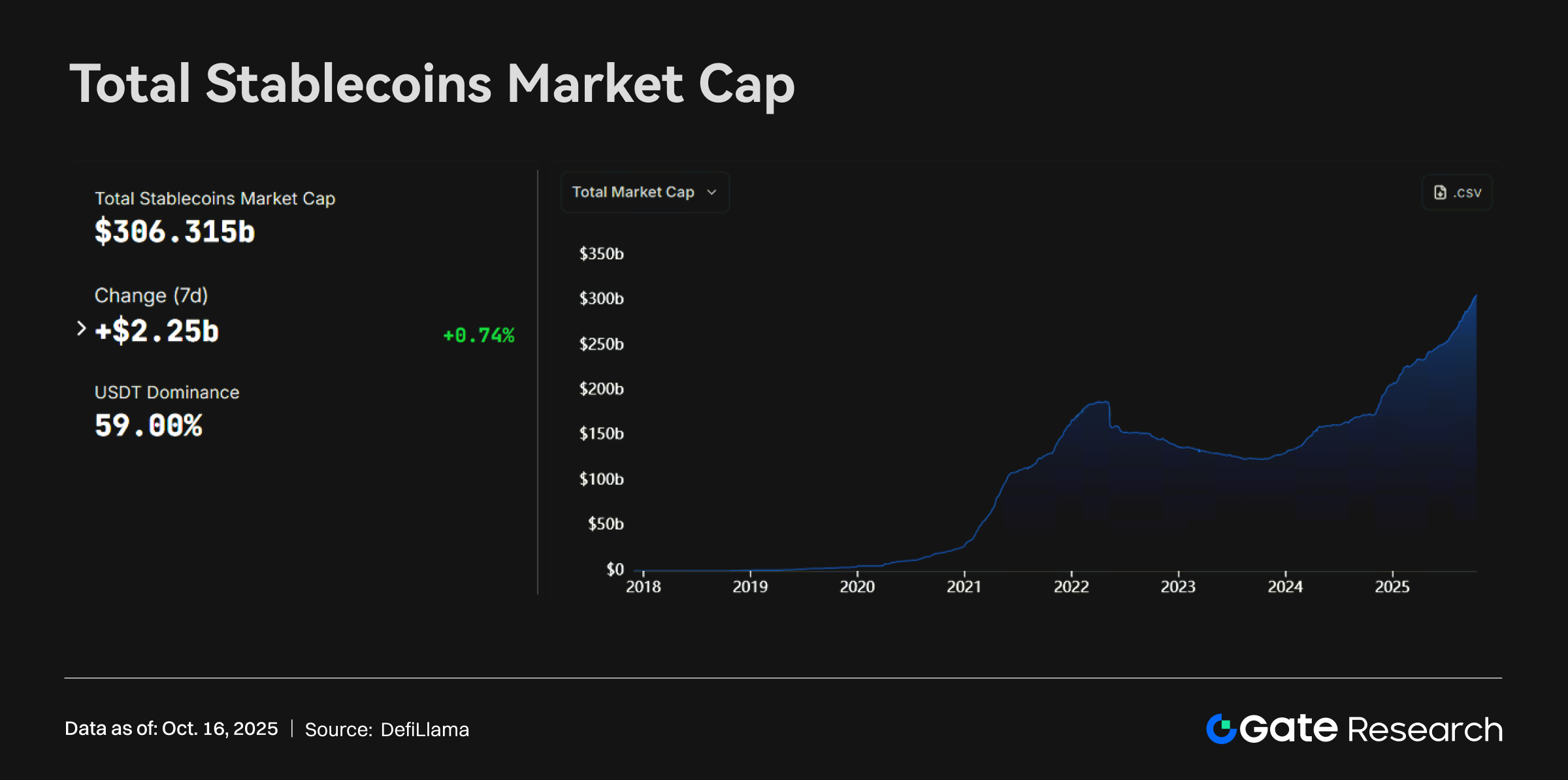 تعكس تدفقات الأموال هذه تفضيل المستثمرين للأصول الآمنة خلال فترات التقلبات الحادة في السوق، وقد تطورت العملات المستقرة لتصبح فئة الأصول الأساسية التي لا غنى عنها في سوق التشفير. تجاوزت القيمة السوقية الإجمالية للعملات المستقرة الآن 300 مليار دولار، مما جعلها جزءًا مهمًا من هيكل السوق. بالإضافة إلى ذلك، توقع وزير الخزانة الأمريكي بيسنت أن تصل أحجام العملات المستقرة في المستقبل إلى تريليون دولار، وعلى الرغم من أن المستوى الحالي لا يزال منخفضًا، إلا أن دورها في تخصيص الأصول المستقرة، وفتح قنوات التمويل، وتداول رأس المال أصبح يتزايد بوضوح، مما يعكس تسارع نضوج وتطور مجال الأصول المشفرة.