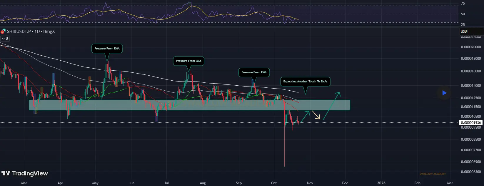 المحلل يتوقع انتعاش 30% لشيب إينو إلى مقاومة EMA حاسمة