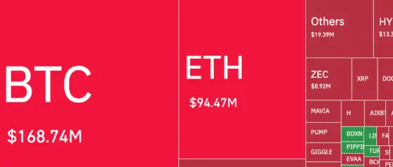 وفقًا لبيانات من منصة، تم تصفية حوالي 168.74 مليون دولار ( أي ما يعادل حوالي 243 مليار وون ) من المراكز في البيتكوين خلال الأربع وعشرين ساعة الماضية، مع كون 93% منها مراكز بيع. في سوق الأصول الرقمية بشكل عام، حدثت تصفيات بقيمة حوالي 392.32 مليون دولار ( أي ما يعادل حوالي 565 مليار وون ).
