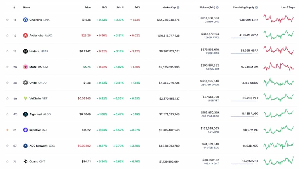 ومع ذلك، فإن قطاع RWA يرتفع بشكل طفيف بالرغم من الاتجاه العام، ليصبح واحدًا من القلائل الذين يقاومون الهبوط. من بينها، يعود انتباه Mantra (OM)، المتخصص في RWA Layer1، ورئيس RWA Ondo Finance (ONDO) في البنية التحتية، بسرعة أثناء استعادة مشاعر السوق، مما يظهر مقاومة قوية. ! الشكل 1 المصدر: CoinMarketCap