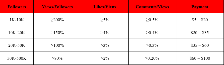 3. All TikToker's work will be evaluated by followers and engagement rate of the video, TikTokers will be rewarded according to the following standard: