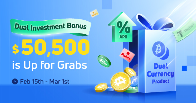 A dual investment product is a non-guaranteed financial product. Investors can use any currency specified in the contract to buy this product. The final settlement currency is determined by the settlement price of the underlying currency when the product expires and the linked price specified in the contract. It allows users to earn interest no matter how the market changes. Users can surely obtain guaranteed income at a fixed rate but may suffer losses due to the changes in settlement currency and settlement price.