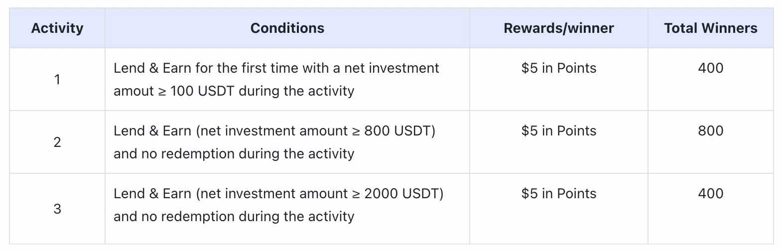 All participants in this giveaway activity can share $8,000 in Points as long as they lend to earn interest as required. Everyone can join each activity and get the corresponding reward. Come and join now!