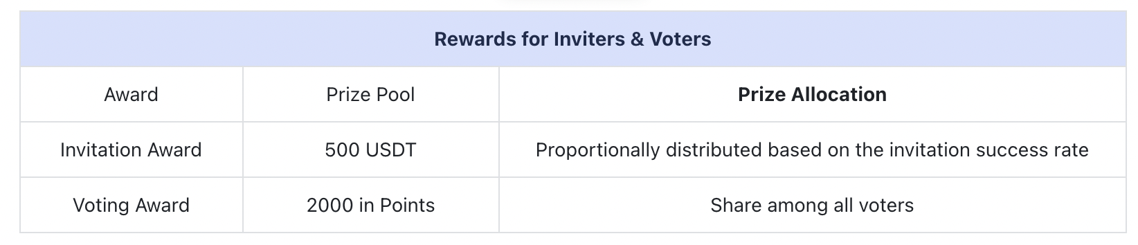 7.Las recompensas se distribuirán en forma de USDT y Puntos y estarán sujetas a las reglas reales del anuncio publicado.