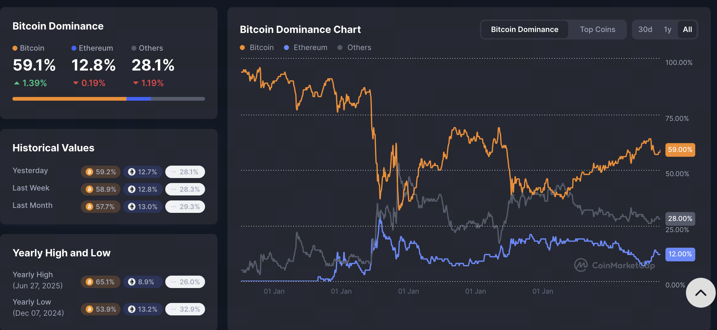 Rising dominance: Consider reducing exposure to altcoins or focusing on Bitcoin-led assets.