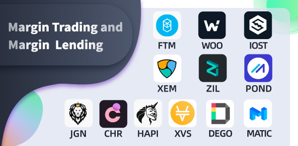 We added FTM, WOO, MATIC, XEM, ZIL, IOST, POND, DEGO, JGN, CHR, HAP and XVS margin trading as well as margin lending.