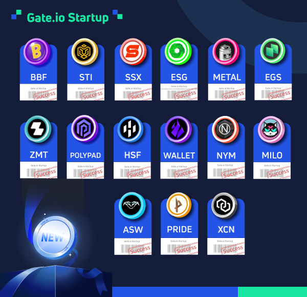 In the past two weeks, we’ve listed many projects on our Startup platform, including NYM, BBF, STI, SSX, ESG, ZMT, ESG, SSX, POLYPAD, METAL, EGS, HSF, WALLET, ASW, PRIDE, XCN, and MILO. Among the current mainstream platforms, Gate Startup platform hosts the largest number of listed projects.