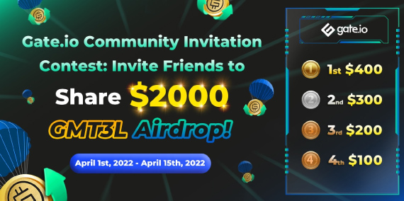 · From Apr 1st to Apr 15th, 2022: Gate Community Invitation Contest: Invite Friends to Share $2000 Valued GMT3L Airdrop!