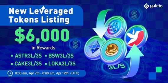 · From Apr 7th to Apr 12th, 2022: $6,000 Giveaway! Gate New Leveraged Tokens Listing - Trade ASTR3L/3S, BSW3L/3S, CAKE3L/3S OR LOKA3L/3S And Earn Rewards!