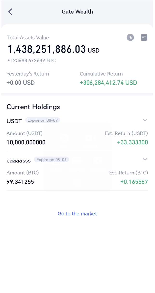 Gate Wealth es una nueva herramienta de gestión introducida por Gate este año. Proporciona una serie de herramientas de inversión y productos estructurados, entre los que se incluyen la acumulación de rangos, las opciones Double No-Touch, la estrategia Snowball y las estrategias cuantitativas, ofreciendo así a los clientes rendimientos de inversión estables y de alto rendimiento. Con la última actualización de la aplicación Monedero y la incorporación de la función de gestión del patrimonio, los usuarios pueden ahora supervisar y gestionar sus activos con sólo pulsar un botón.