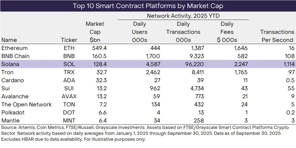 La empresa de gestión de activos encriptados Grayscale realizó un análisis fundamental completo de Solana en su último informe sobre el "mercado financiero de criptomonedas". Grayscale considera que Solana se encuentra en una posición de liderazgo en la categoría de blockchain en términos de número de usuarios, volumen de transacciones y tarifas de transacción, estos indicadores clave hacen que SOL se destaque entre sus pares.