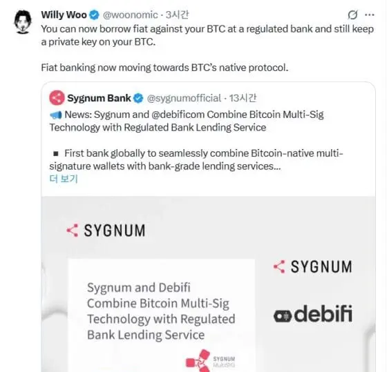 Sygnum Bank anunció esto en un comunicado de prensa el 24 (hora local). La característica clave de esta nueva solución es que permite a los prestatarios mantener “control conjunto” sobre su colateral a través de la gestión distribuida de claves, a diferencia de los métodos convencionales donde el colateral se confía a un solo custodio.