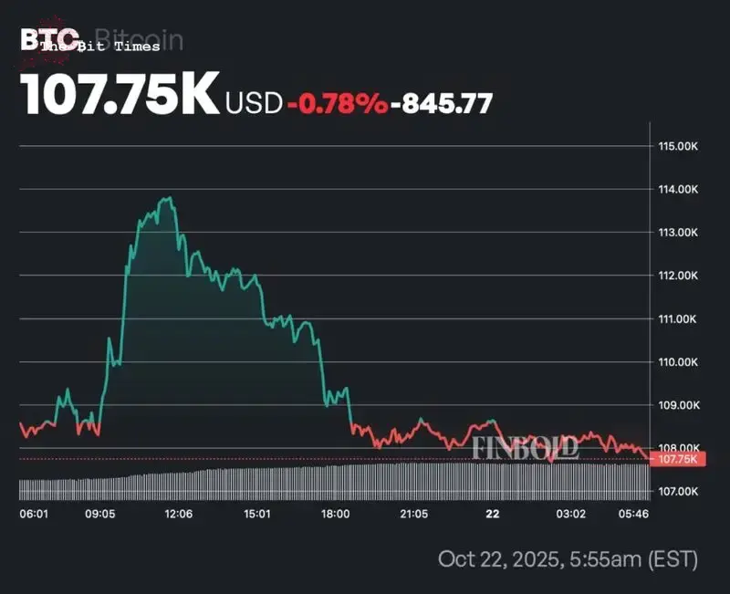L'histoire technique reste simple. La ligne de 107 000 $ de Bitcoin est désormais le point de référence pour l'ensemble du marché. Si les acheteurs la maintiennent, les achats lors des baisses par les institutions peuvent garder le plancher intact. Si elle se casse, un mouvement vers 105 000 $ semble inévitable, et les altcoins sont peu susceptibles d'échapper à la chute.