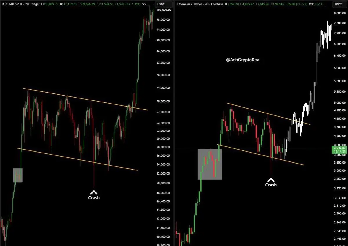 Le sentiment du marché évolue rapidement, avec de multiples analystes pointant vers des structures techniques qui ressemblent au modèle de rupture de Bitcoin en 2024.