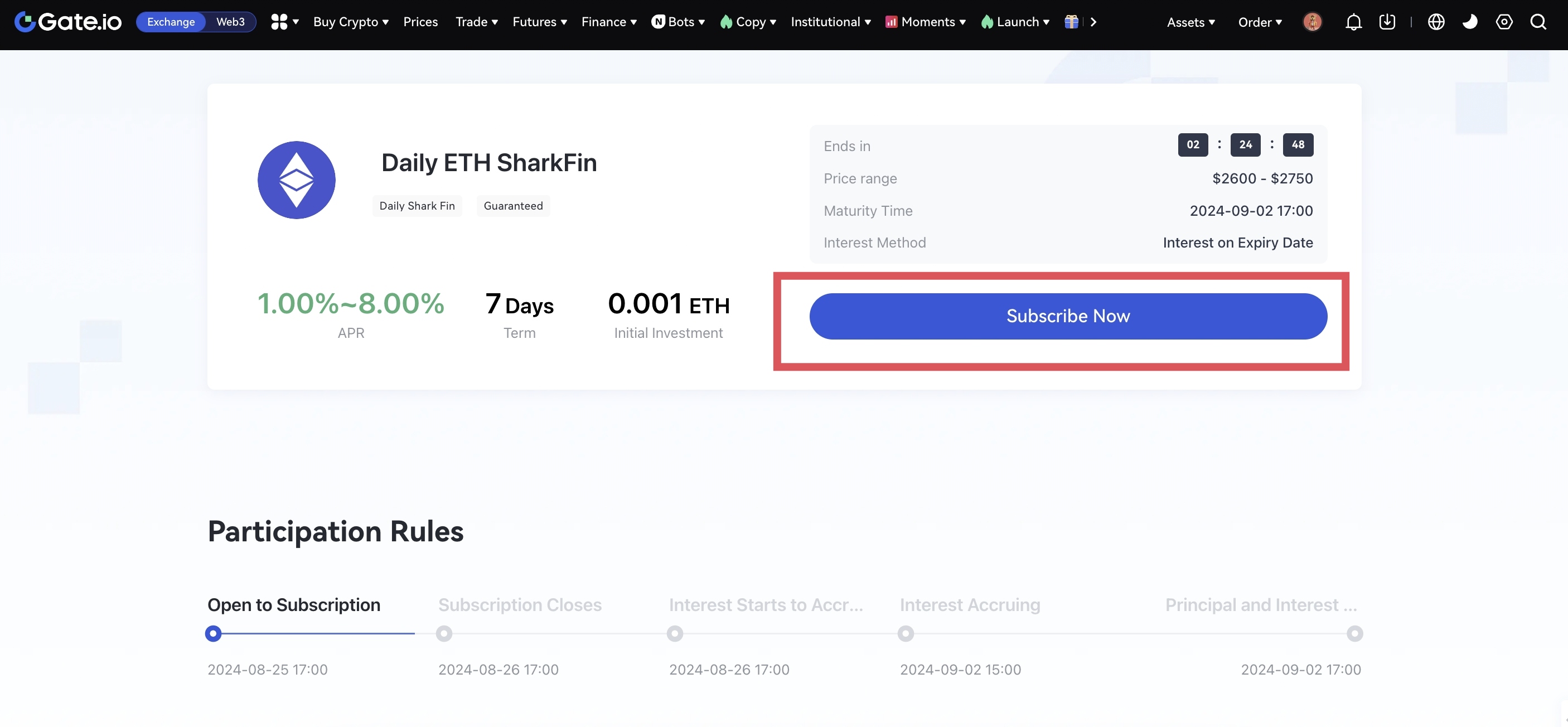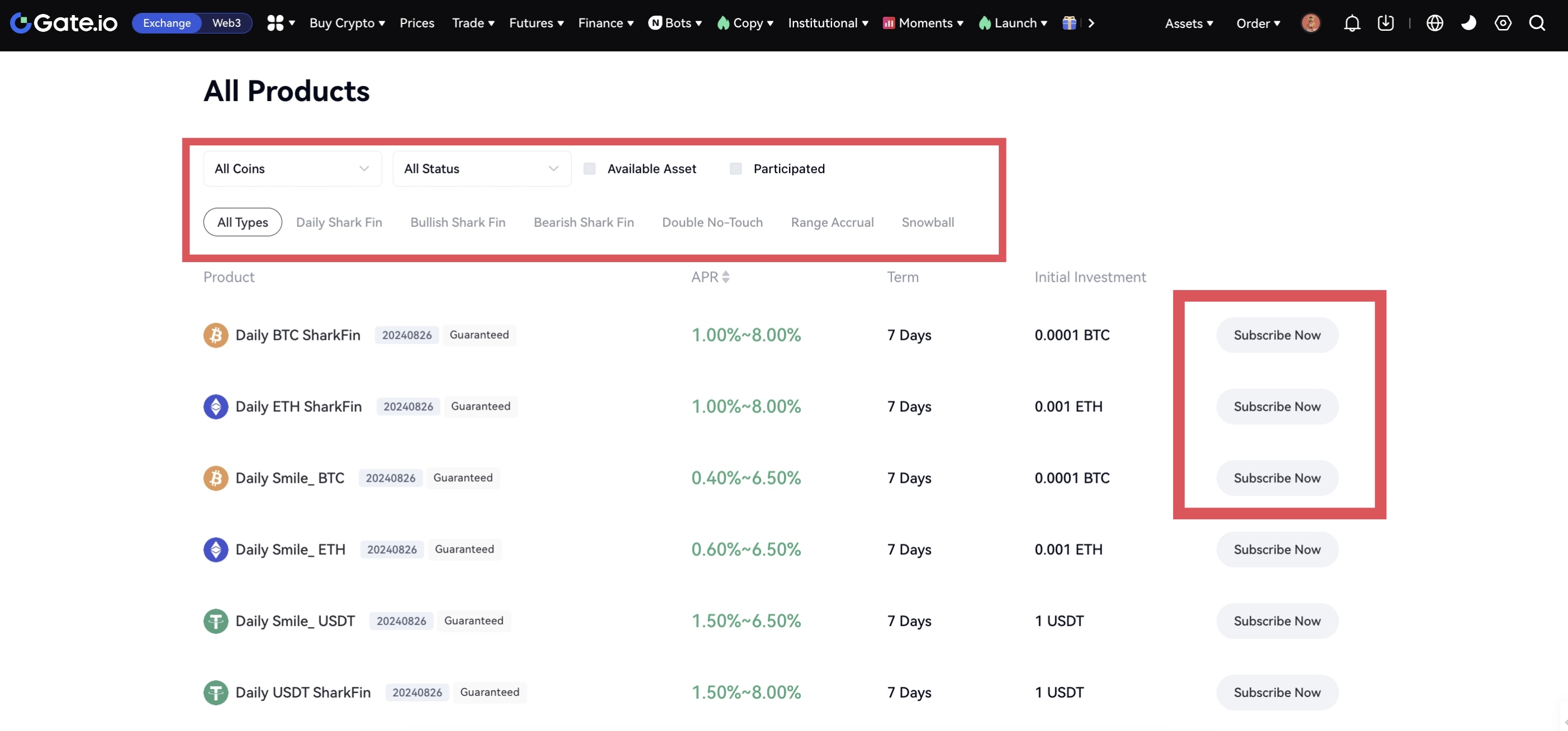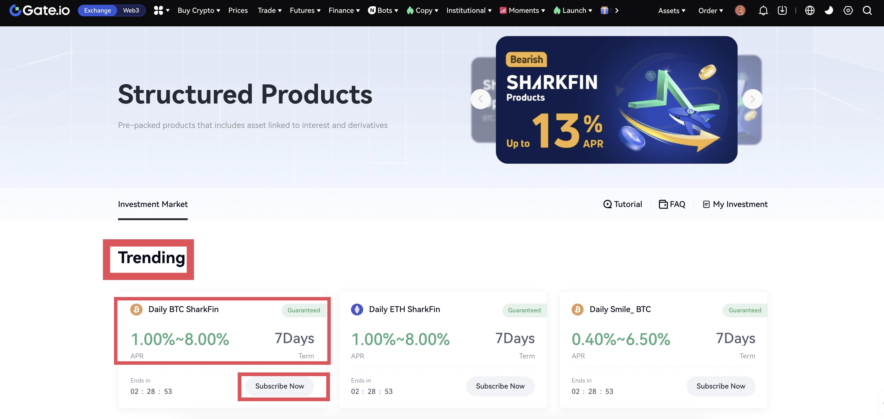 2. In the "Trending" section, you can view the product name, APR, investment term, start position, and other related information, and select a product as needed by clicking "Subscribe Now".