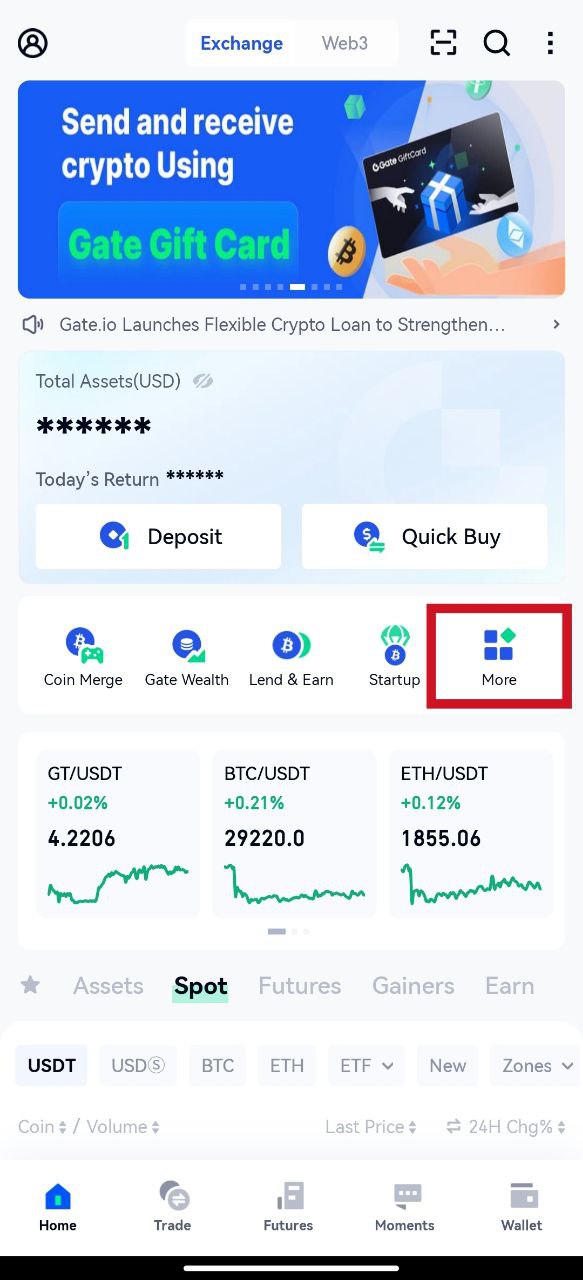 1.Masuk ke aplikasi Gate,klik 【Lainnya】 di beranda,lalu gulir ke bawah ke bawah,dan klik 【Kartu Hadiah】