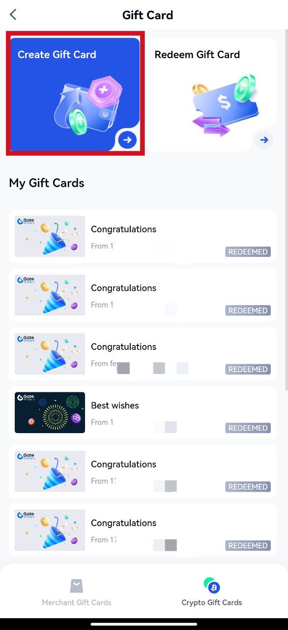 2.Klik pada【Kartun Hadiah Kripto】,lalu pilih【Buat Kartu Hadiah】