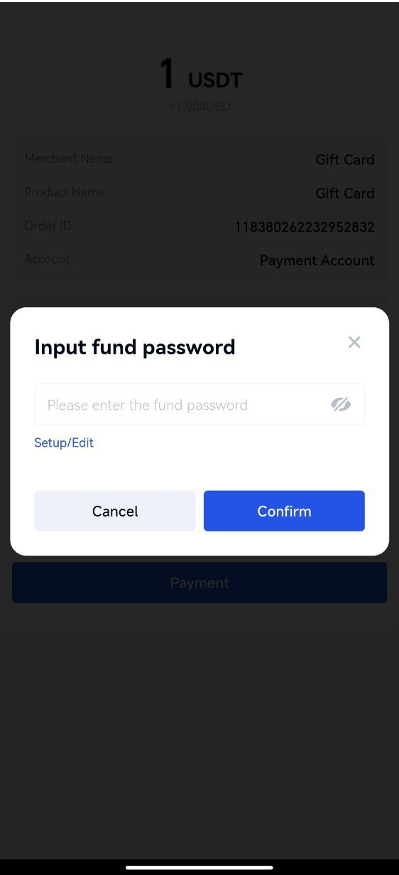4.Verifikasi informasi pesanan,klik 【Pembayaran】,masukkan kata sandi dana Anda untuk menyelesaikan pesanan