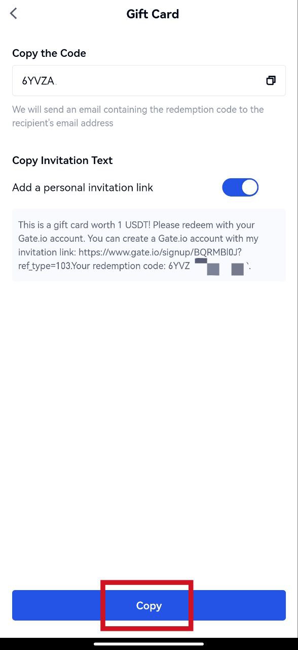 2.1 Pilih 【Kirim Kartu Hadiah】。Klik 【Salin】 untuk menyalin kode redeem dan mengirimkan informasi langsung ke penerima。