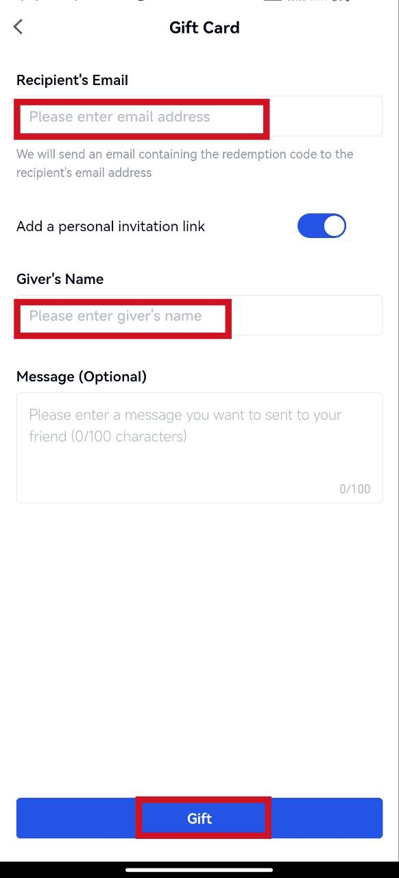 2.2 Pilih 【ke alamat】,dan masukkan alamat email penerima bersama dengan nama pemberi。Pada langkah ini,Anda juga dapat menyertakan pesan untuk penerima。Setelah dikonfirmasi,klik 【Hadiah】 untuk menyelesaikan proses。