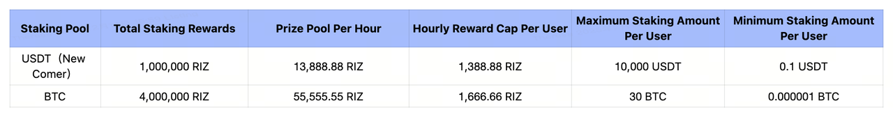 Bagaimana Cara Berpartisipasi: Masuk ke akun Gate Anda dan lengkapi verifikasi identitas → Arahkan ke Launchpool → Tahan setidaknya 0.1 USDT/0.01 GT/1 RIZ/0.000001 BTC → Klik [Stake Sekarang].